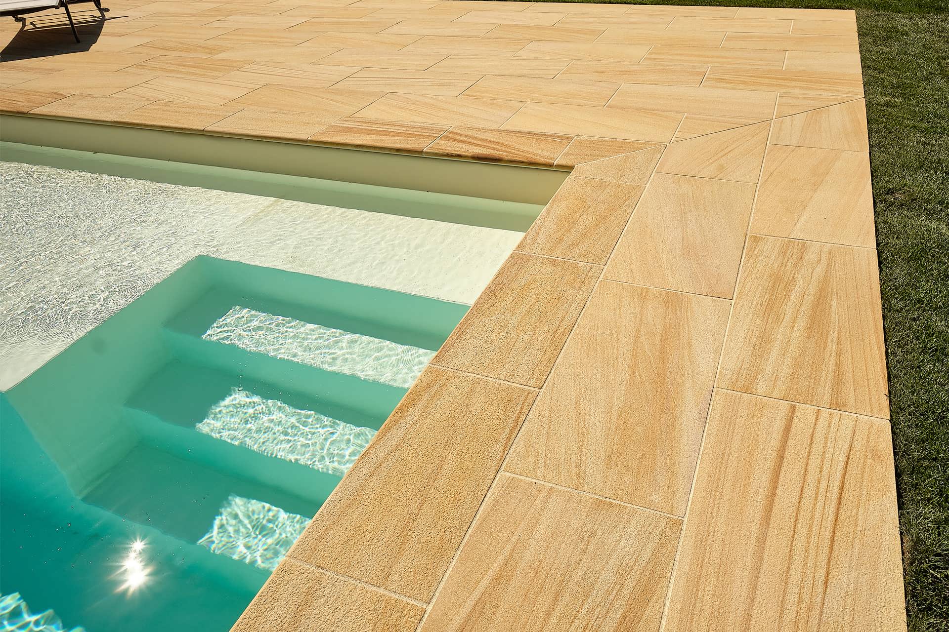 Il pavimento per piscina Wooden viene estratto da una profonda e molto caratteristica cava del centro Asia. L’esclusività di questa cava risiede nel prezioso materiale che contiene: infatti il Wooden è stato da noi selezionato per i suoi unici mix di colori che sembrano decorarne la superficie. La pratica con cui si ottiene il pavimento Wooden parte dall’estrazione di enormi blocchi da cui si ricavano grandi lastre, successivamente tagliate su misura. Come ultimo processo viene impallinata la superficie ad alta pressione e così otteniamo il pavimento per piscina Wooden. La particolarità di questo materiale è descritta dal suo nome, i suoi colori gialli con sfumature di marroncino chiaro rendono questo materiale molto simile al legno, anche grazie ai suoi caratteristici nodi. Le sue caratteristiche fisiche principali, che noi ricerchiamo sempre in tutte le nostre proposte, sono la resistenza a cloro, sale, gelo e acidi. Un grande vantaggio dell’utilizzo questo materiale nella propria piscina è il suo grip antiscivolo; inoltre si distingue per la sua conducibilità termica medio bassa, tale da non scottare la pelle al contatto col bordo nelle giornate di sole. La sua natura di arenaria purissima fa sì che abbia una porosità maggiore rispetto ad altre pietre, pertanto va rigorosamente trattato con oleo idrorepellente, così da renderlo antimacchia e preservarlo nel tempo. L’elasticità di questo materiale e la sua distinzione da tutti gli altri lo rendono perfetto per qualsiasi contesto classico, moderno e rustico.